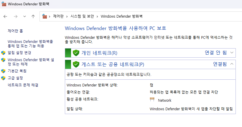 윈도우에서는 방화벽을 열어줘야 외부에서 접속이 가능하다.