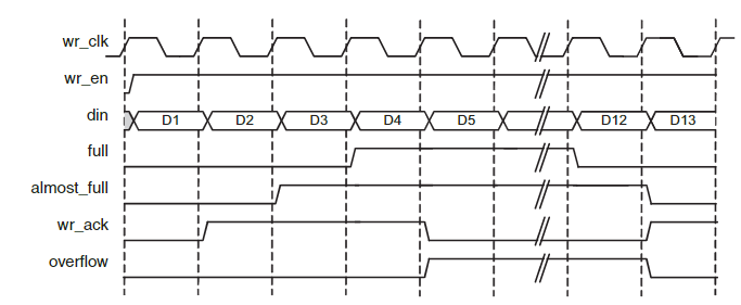 FIFO가 가득 차지 않으면 FIFO에 계속 데이터를 쓴다. FIFO가 비어 있지 않으면 FIFO에서 데이터를 계속 읽는다.
