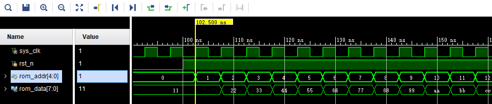 Xilinx FPGA의 온칩 ROM은 초기화 데이터 구성을 지원한다. rom_init.coe라는 파일을 만들어서 사용해야 한다.